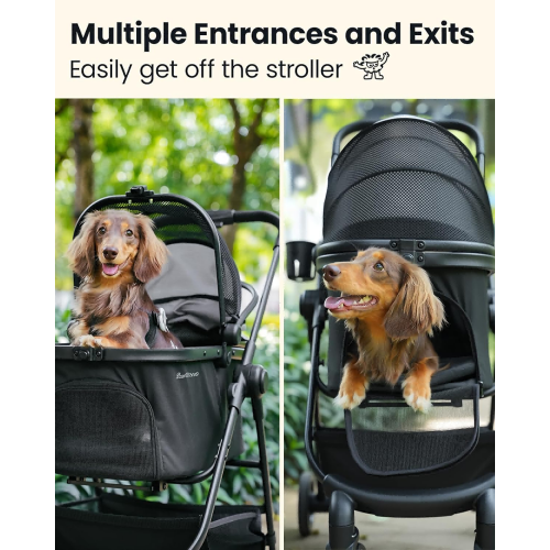 - COMFORT EXPERIENCE: Our versatile dog stroller features an adjustable canopy, breathable mesh windows, and a cozy padded interior with front exit for easy access. Ensures premium comfort—the ultimate stroller for dogs.